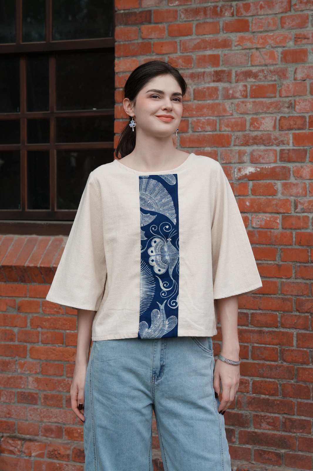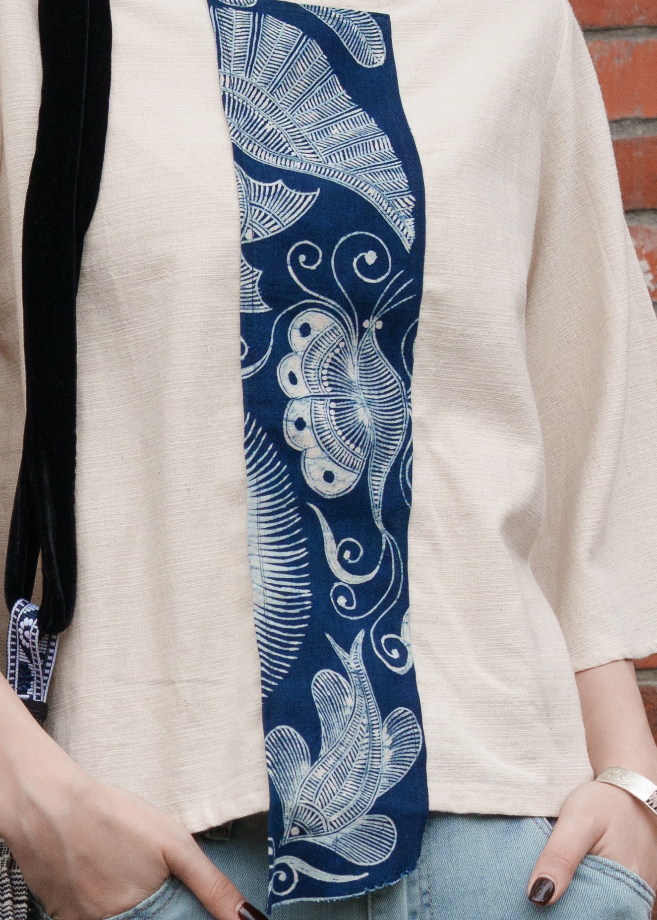 印度精梳棉的溫潤質地,結合貴州手繪蠟染的深邃藍韻,