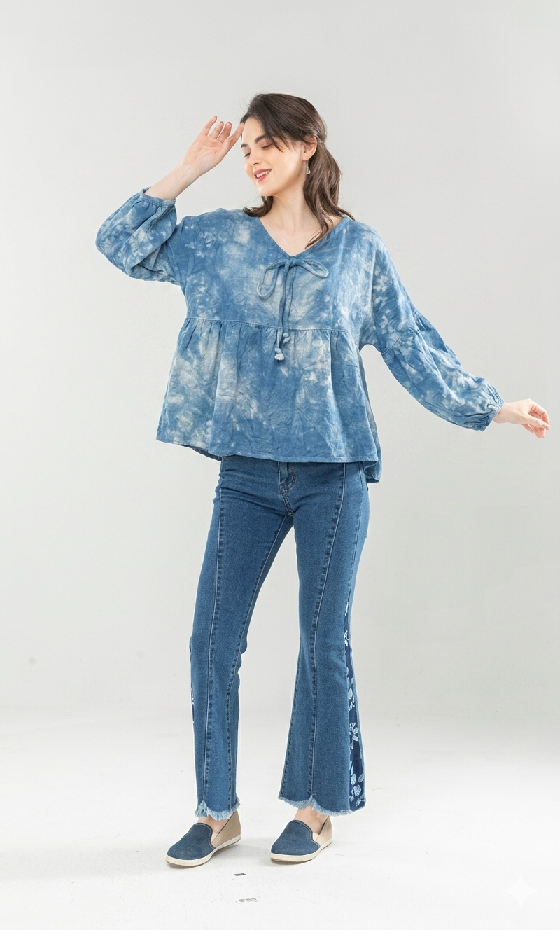藍染亞麻上衣~F垂墜度佳