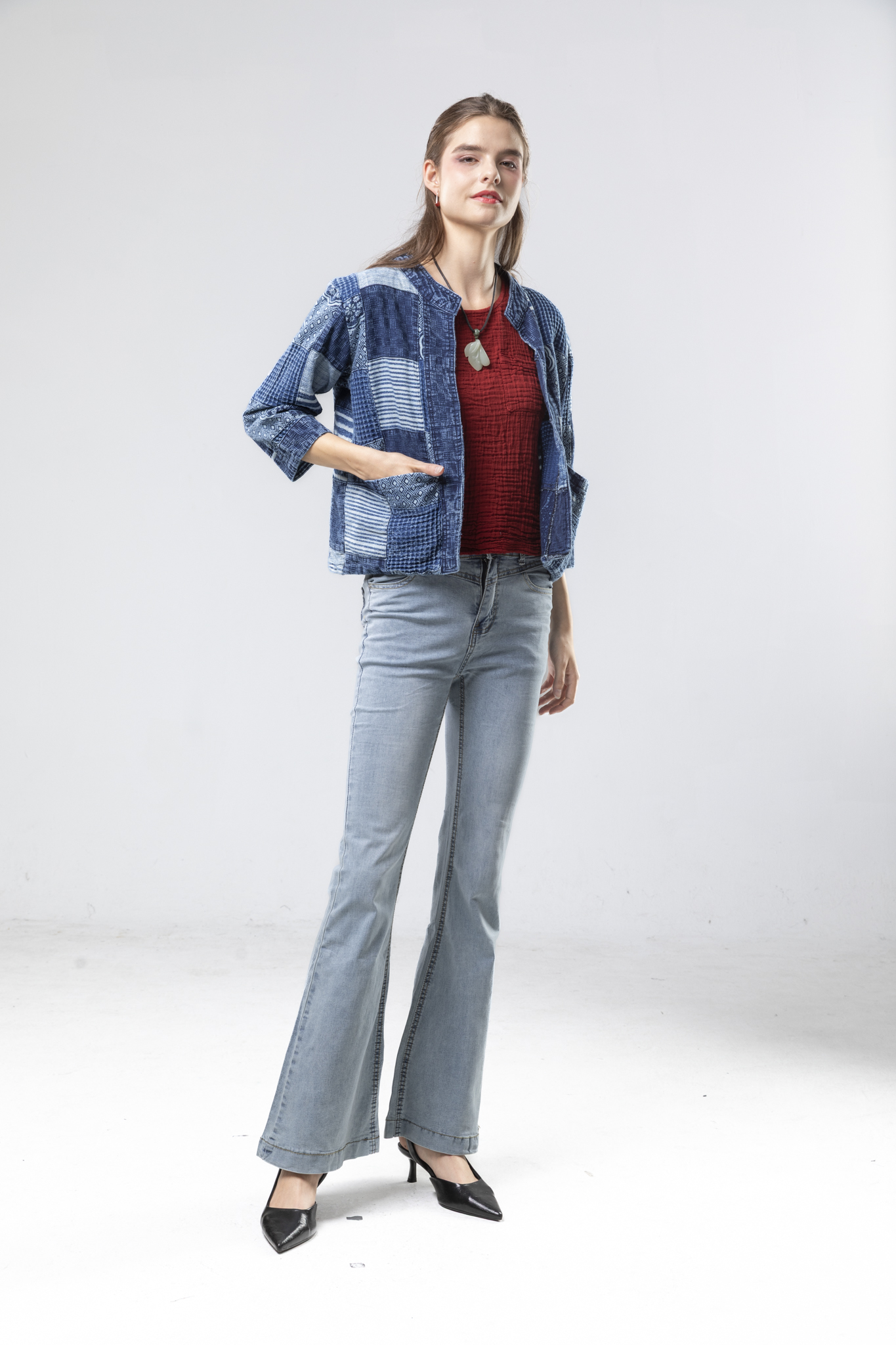 淺藍染喇叭牛仔褲 首頁 產品列表 外著裙.褲 淺藍染喇叭牛仔褲 產品型號 : P20210818-2 致力於永續時尚就該用 #再生材質,思前想後忍痛將珍藏的第一件藍染褲,揮刀一裁!變身這褲口袋!!! 第一條藍染褲是2002住上海時在輕紡市場買的零頭布,因為從台灣帶的衣服不夠,就拿這布請市場阿姨做一條寬褲,工錢約莫20人民幣加上布料售價,當時覺得好便宜~~玩囊羞捨沒能多做幾件...... 價格 : $ 1480 元 規格選項 : M L藍花花 XL XXL 數量 : 尺寸表/試穿與測量 加入購物車