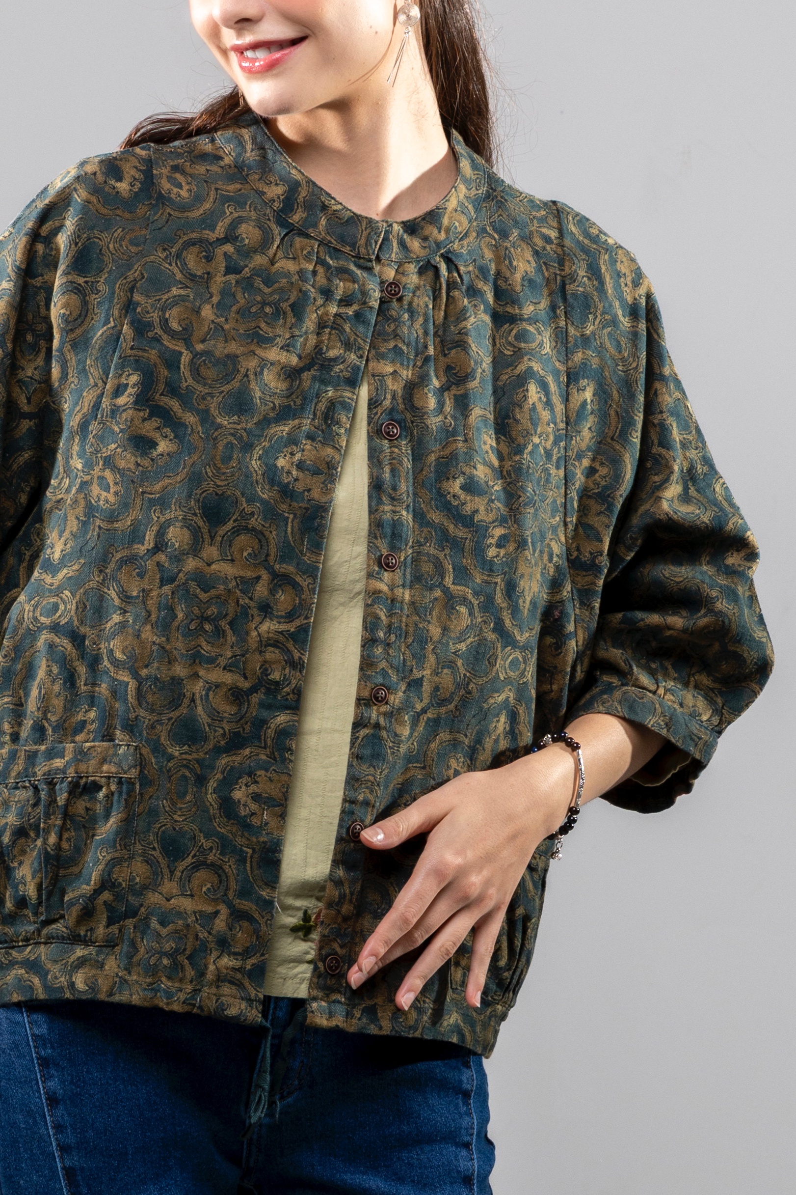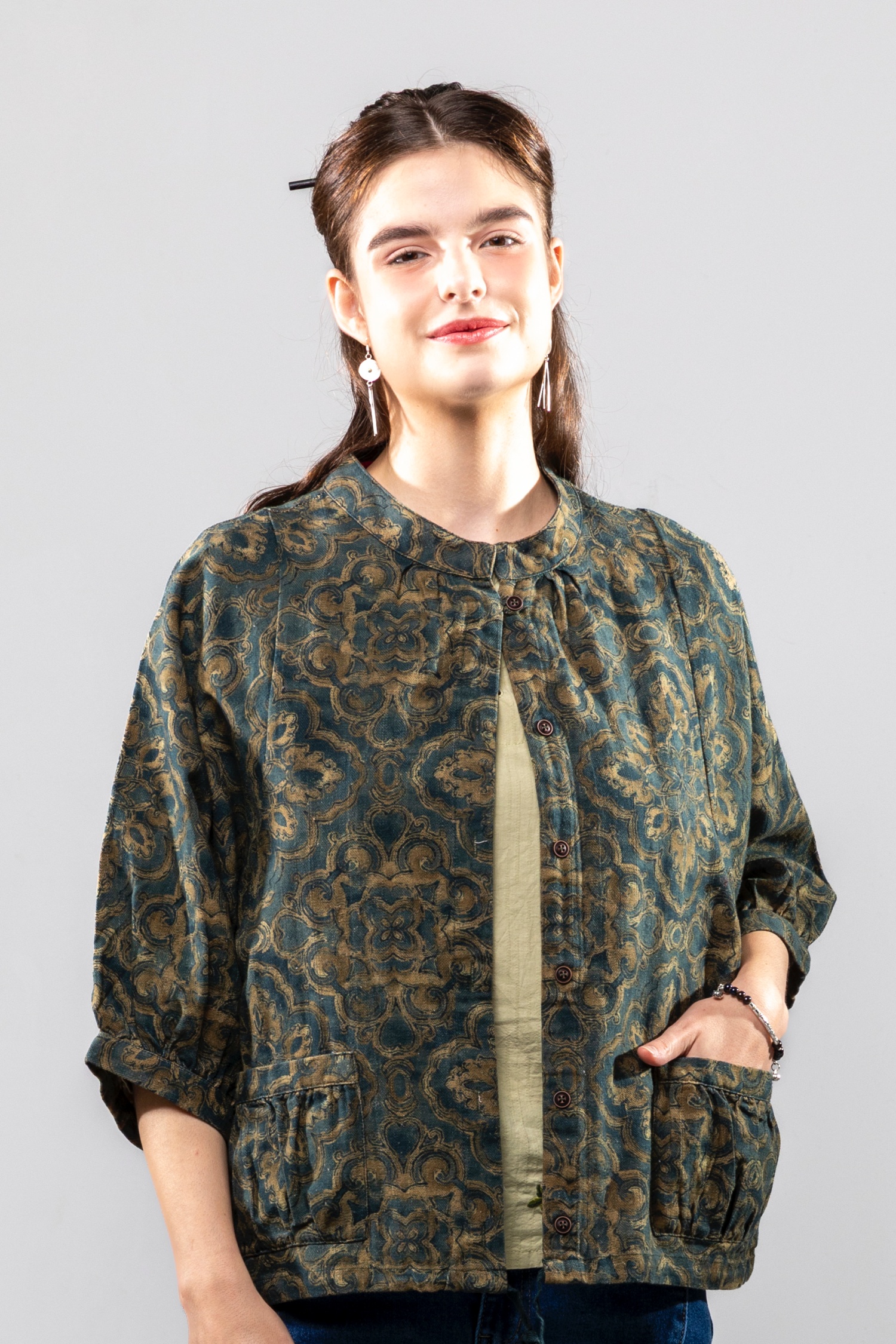 唐綠緹花棉外罩衫襯衫 首頁 產品列表 花布繡花 唐綠緹花棉外罩衫襯衫 產品型號 : C20251209 唐朝的顏色,團錦的花色 #我們只有一個地球 #永續時尚 價格 : $ 1288 元 規格選項 : F 數量 : 尺寸表/試穿與測量 加入購物車