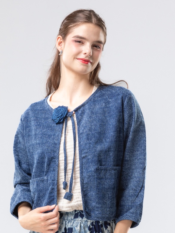 輕量藍染棉仿若沒穿,藍染布料是讓身材有分割效果,看來更修長顯瘦啊!在地球暖化越來越熱之際,藉由透氣吸汗又輕盈的精梳棉衫,帶來絲絲清涼自在感。
