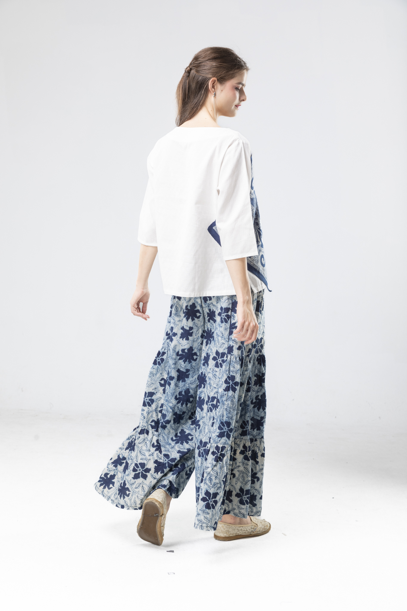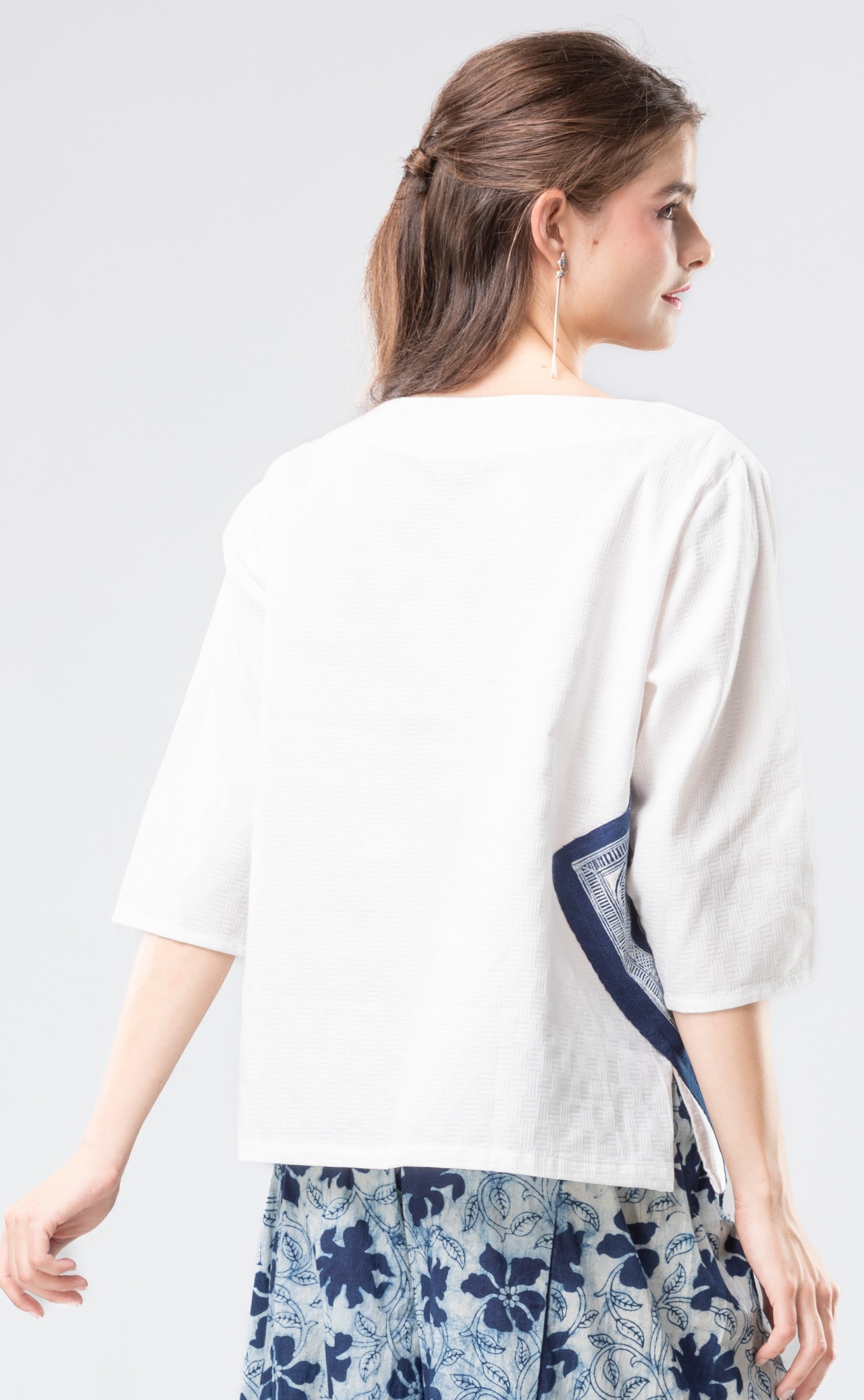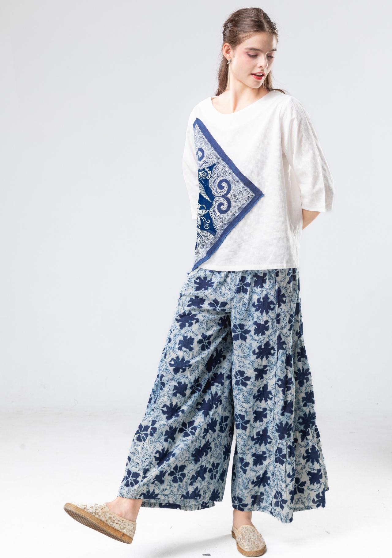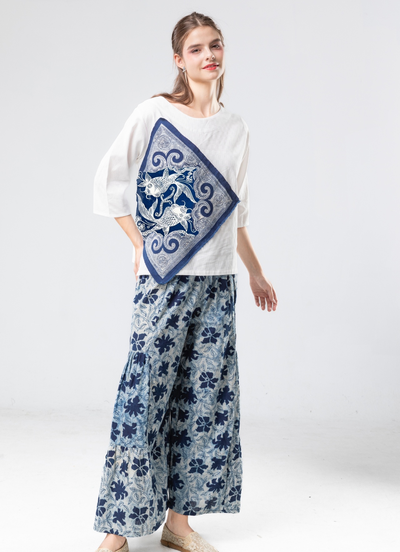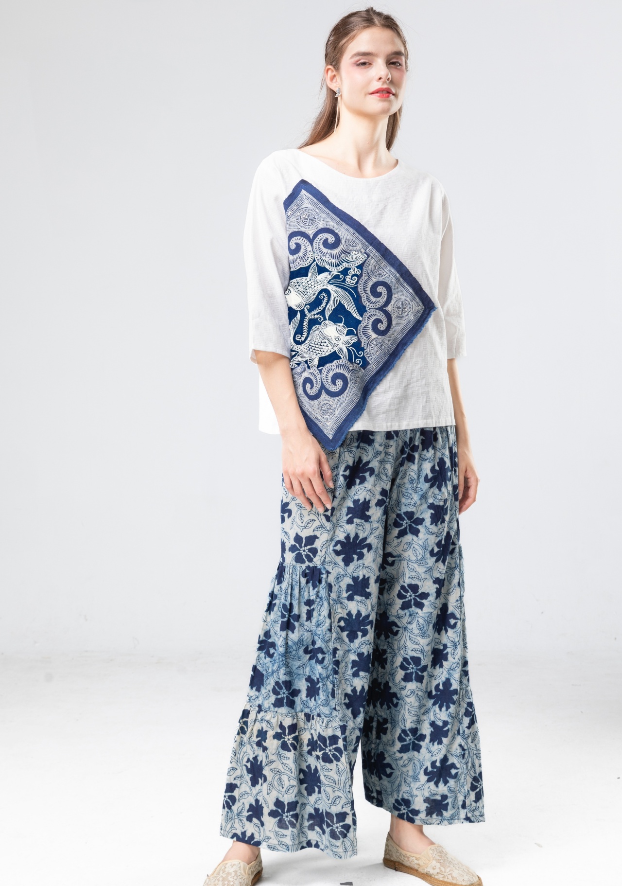 印度精梳棉的溫潤質地,結合貴州手繪蠟染的深邃藍韻,