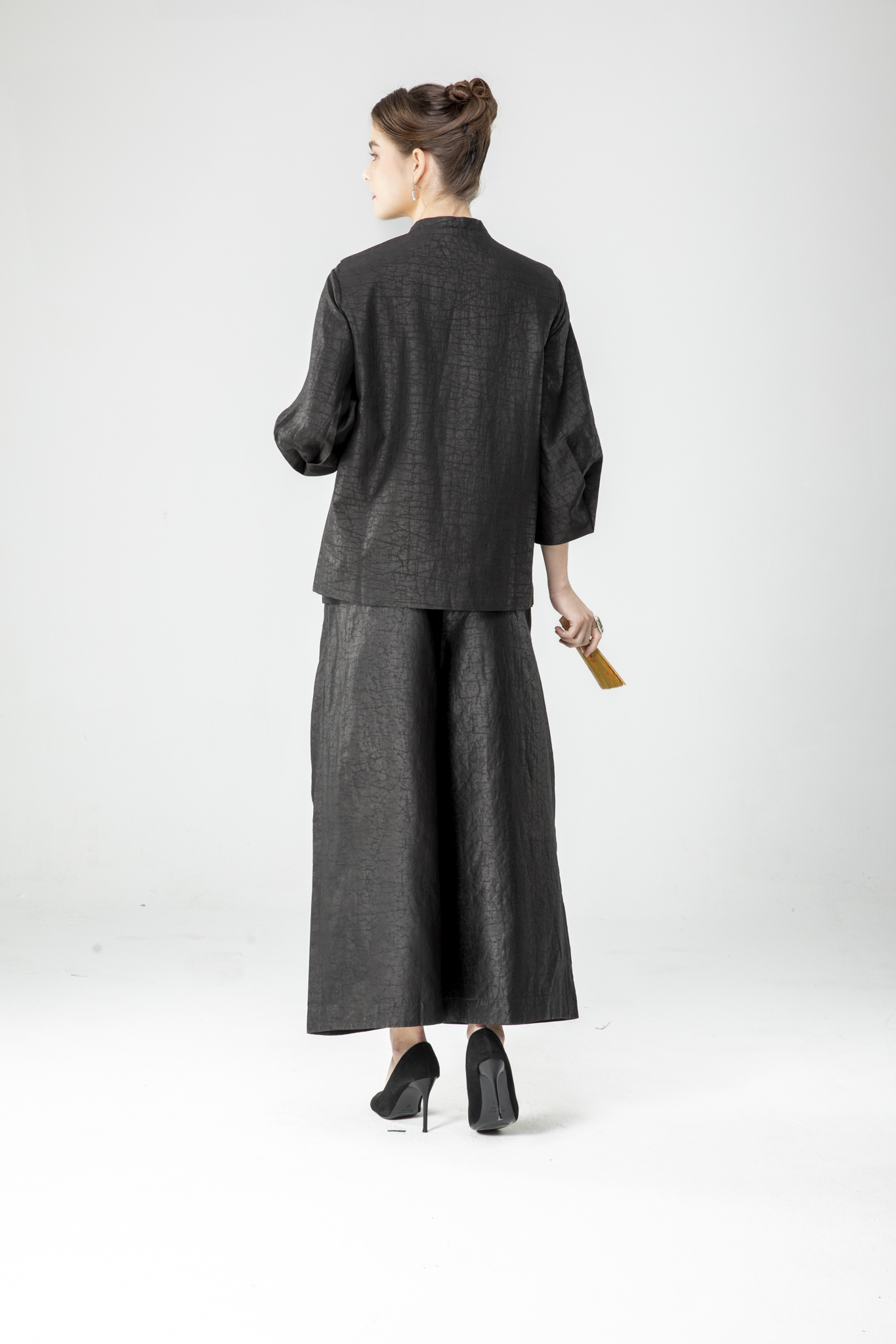 香雲紗馬甲背心F 首頁 產品列表 花布繡花 香雲紗馬甲背心F 產品型號 : C20260203 #香雲紗三件套 =背心 +上衣+ 褲 同一塊黑色面料,同一種龜裂花紋(象徵長壽) 背心:用本布做的三扣子(單數),兩側口袋,真絲內裡。 上衣:圓領,,七顆扣(單數),兩側口帶,無內裡。 寬褲:鬆緊+綁繩(本布),兩側口袋。 簡約大氣,鑑之 賞之 品之 人生最值得擁有的衣裳,盡在香雲紗。 價格 : $ 3980 元 規格選項 : F背心 褲 數量 : 尺寸表/試穿與測量 加入購物車