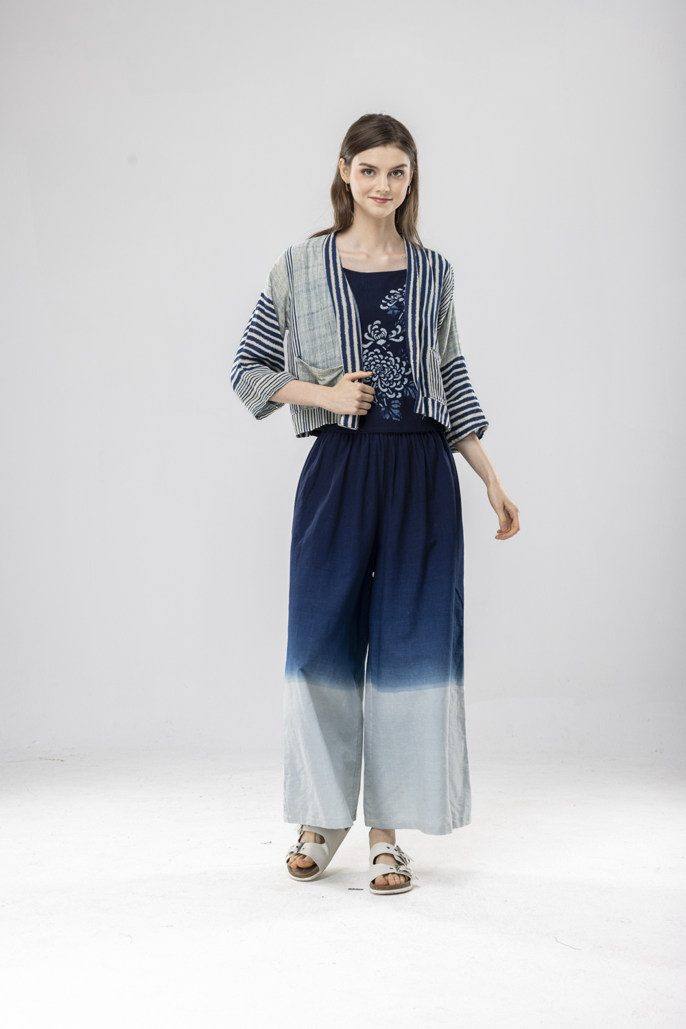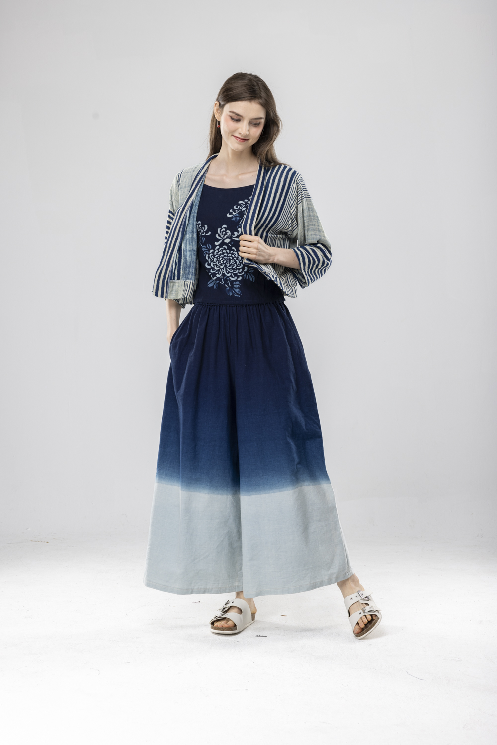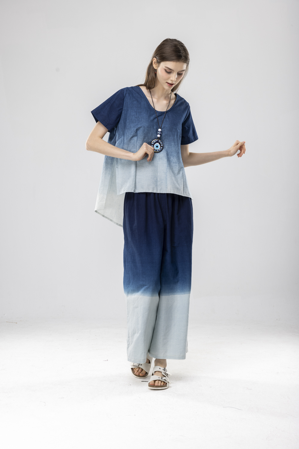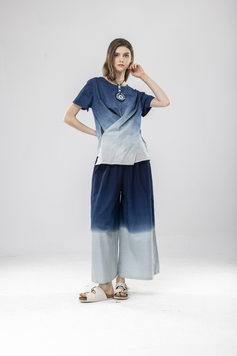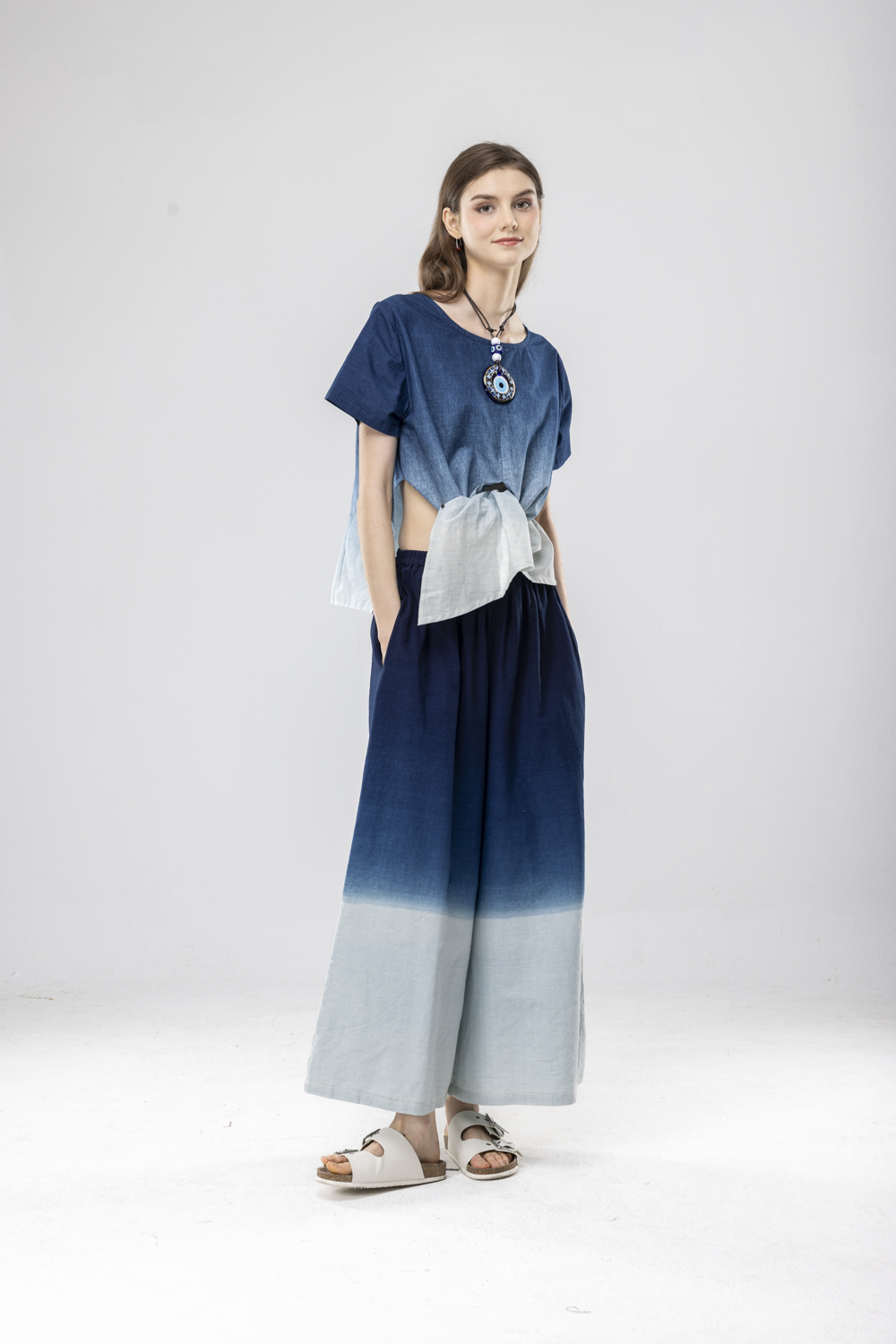 藍染漸層染寬褲F永樂